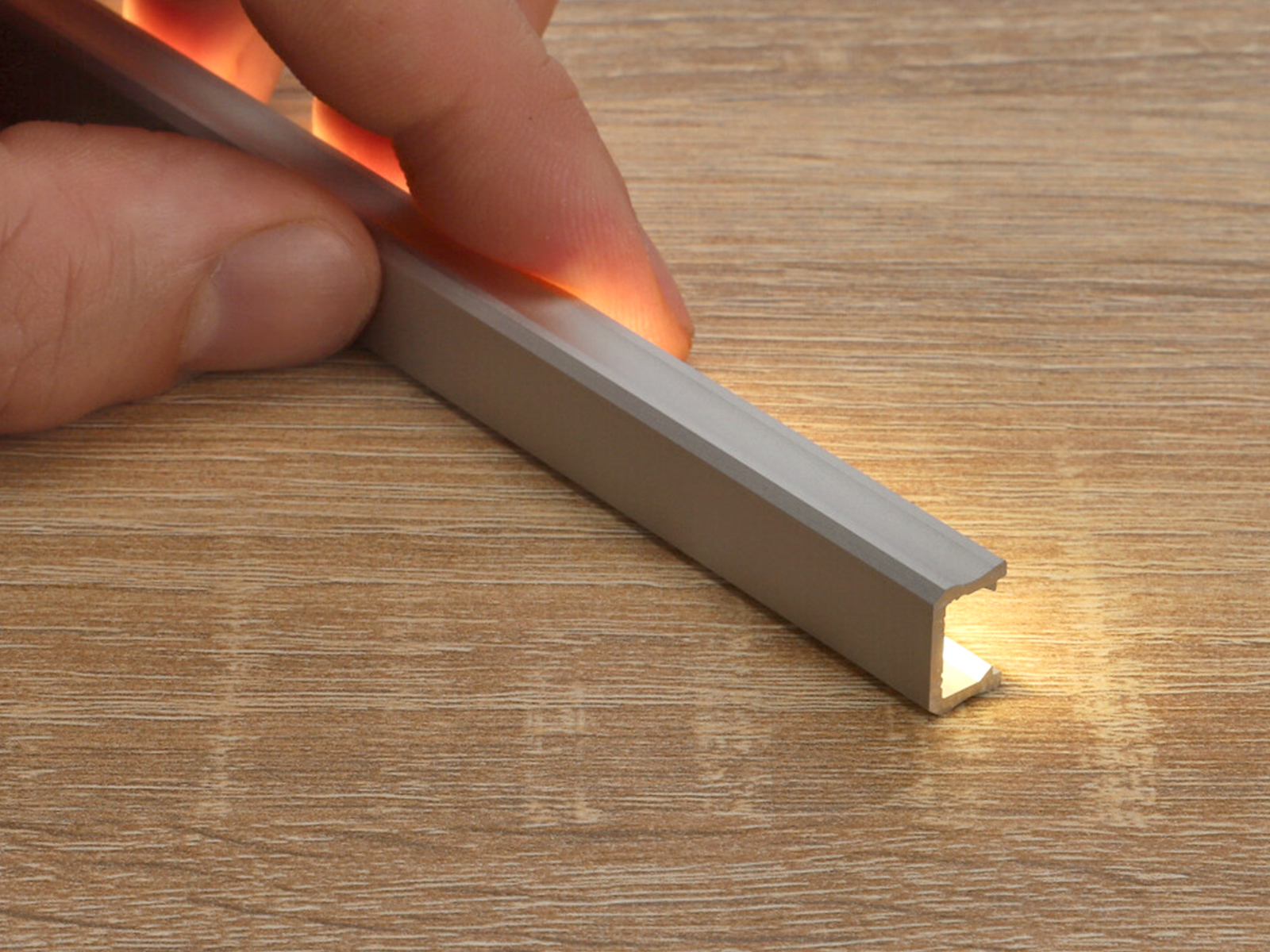 Alumínium LED profil: Alumíniumból készült szálas termék, különböző keresztmetszetekkel. Kifejezetten LED szalagok beépítéséhez, dekoratív takarásához, a LED által termelt hő elvezetésére szolgáló alumínium sín.