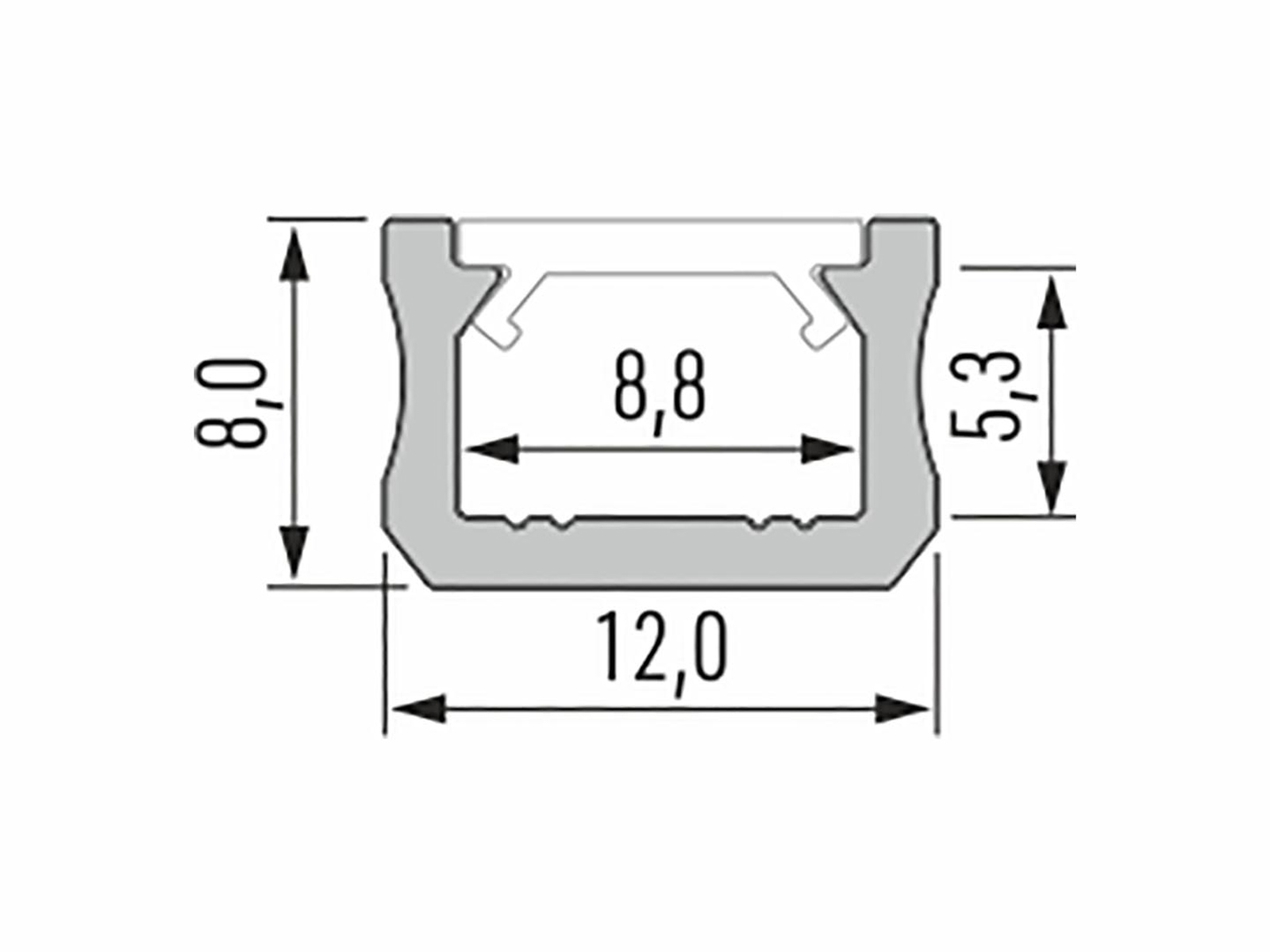 Type-X Fehér - Alumínium U profil LED szalagos világításhoz 12x8 mm (Opál búrával)