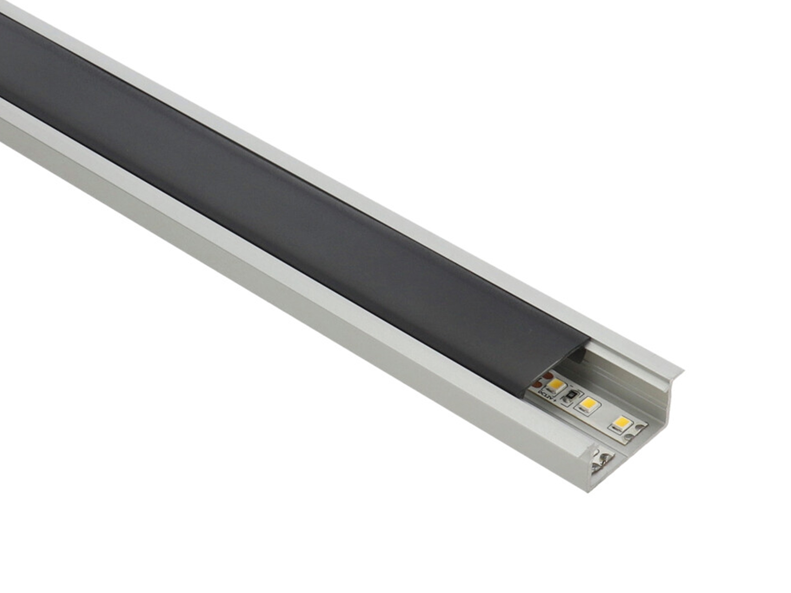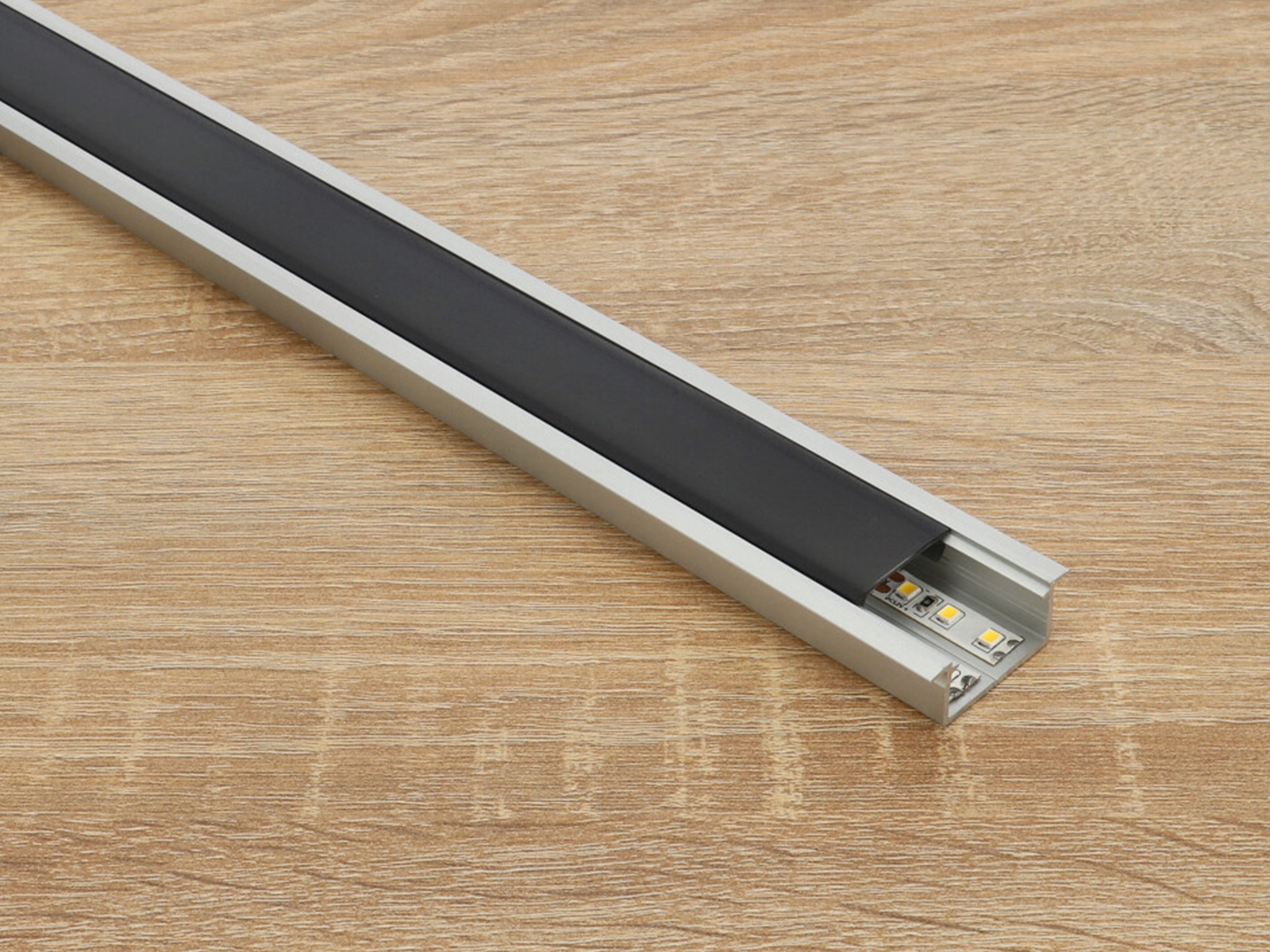 GEMI Ezüst - Alumínium süllyeszthető U profil LED szalaghoz (Fekete félig átlátszó PMMA búrával)