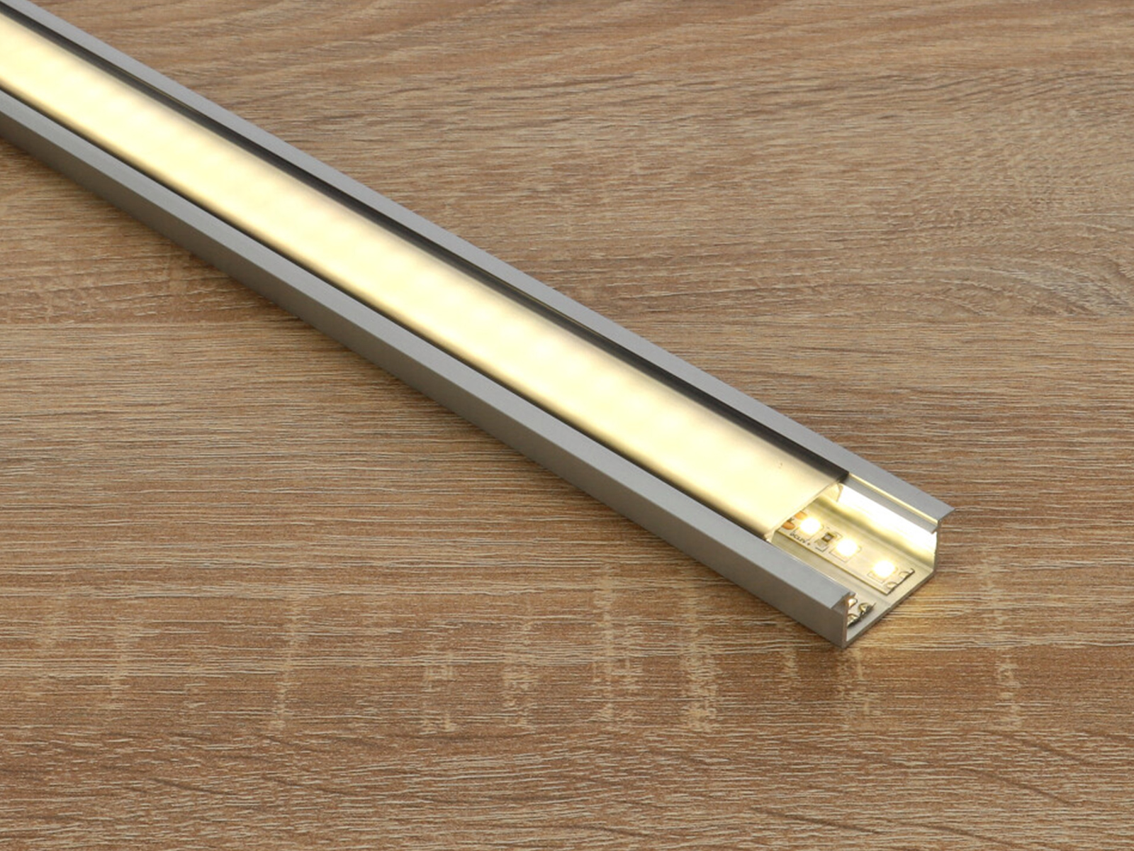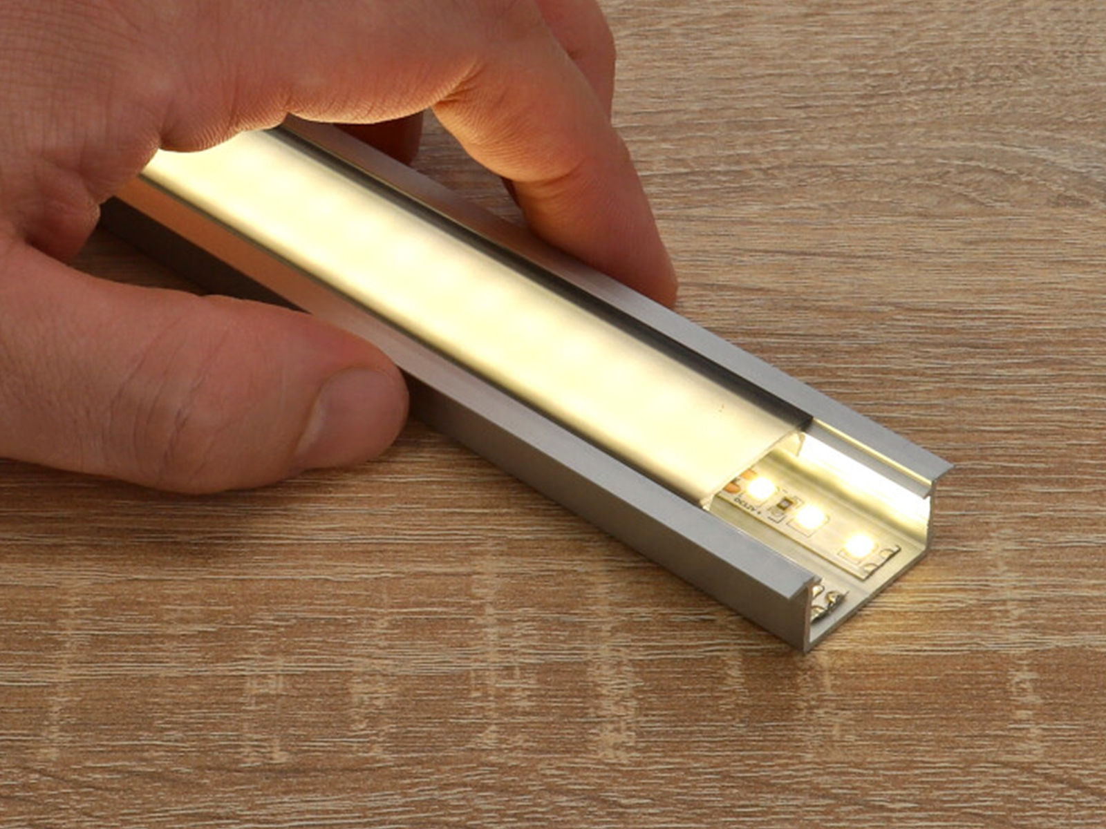 Alumínium LED profil: Alumíniumból készült szálas termék, különböző keresztmetszetekkel. Kifejezetten LED szalagok beépítéséhez, dekoratív takarásához, a LED által termelt hő elvezetésére szolgáló alumínium sín.
