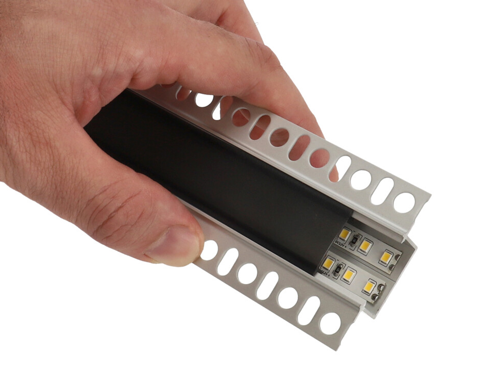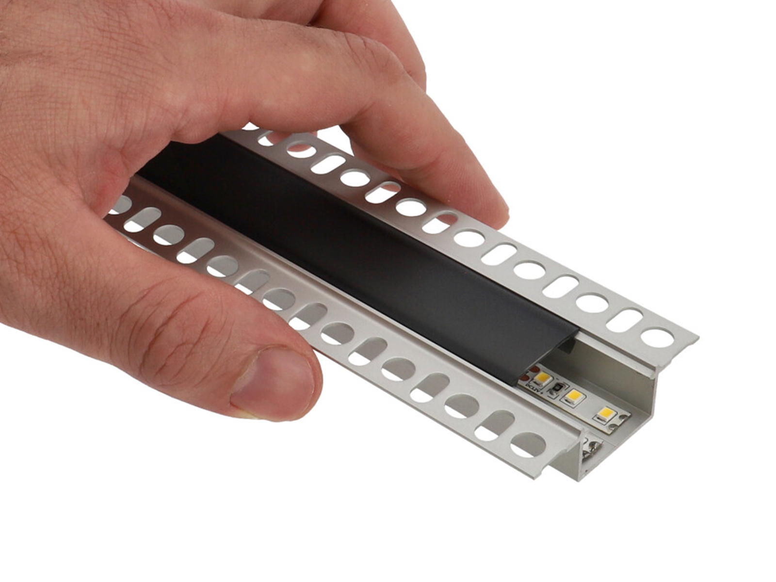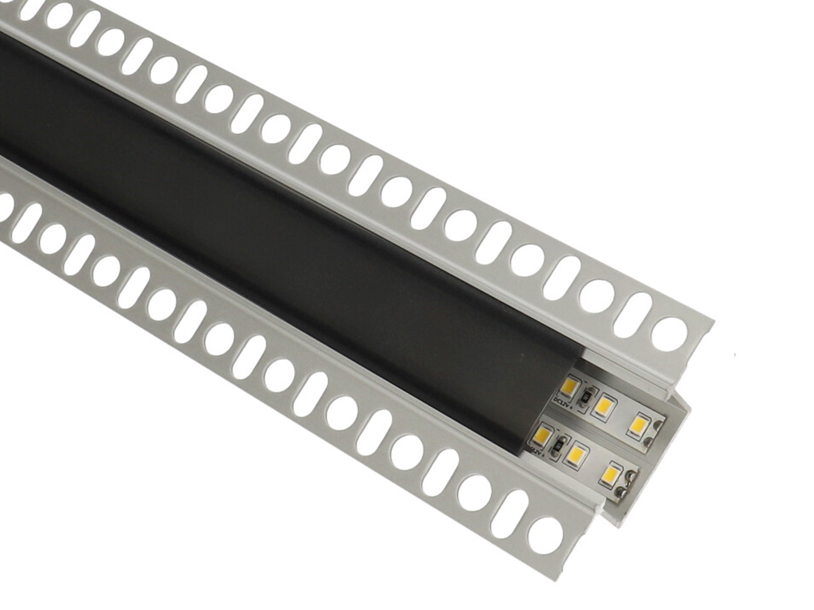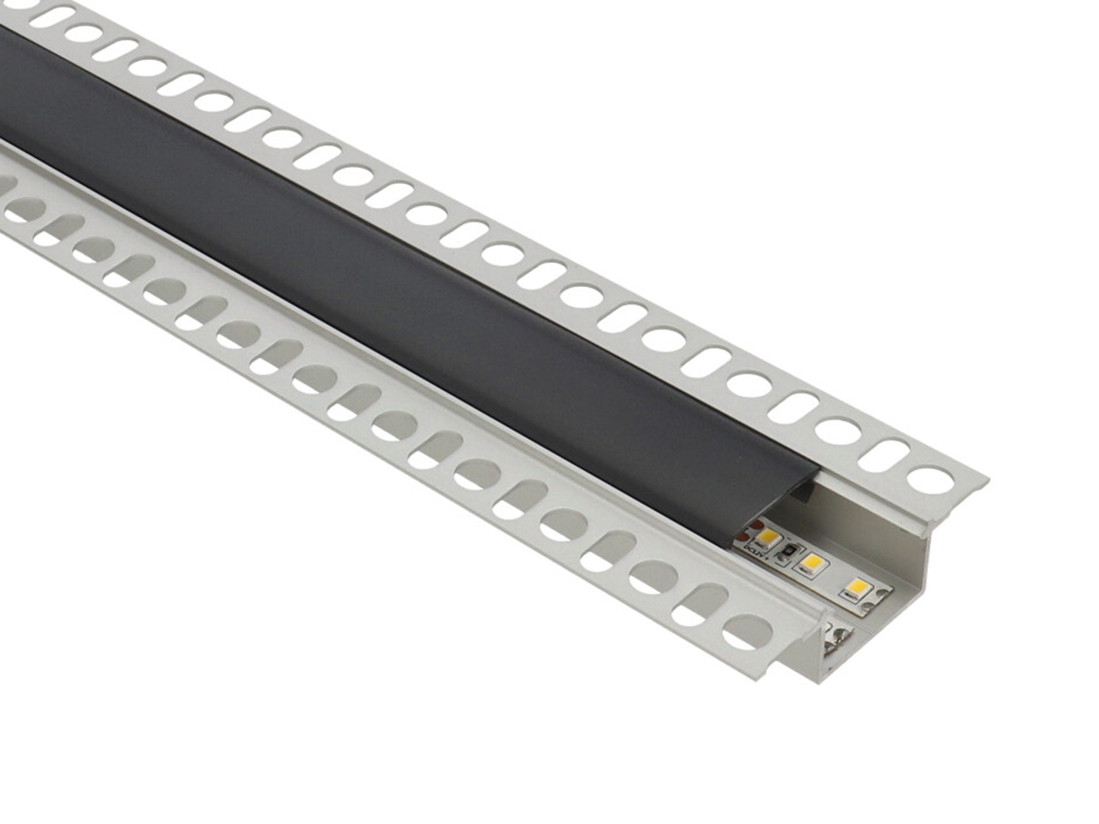 HIRO Ezüst - Gipszkartonba süllyeszthető alu profil LED szalaghoz (Fekete félig átlátszó PMMA búrával)