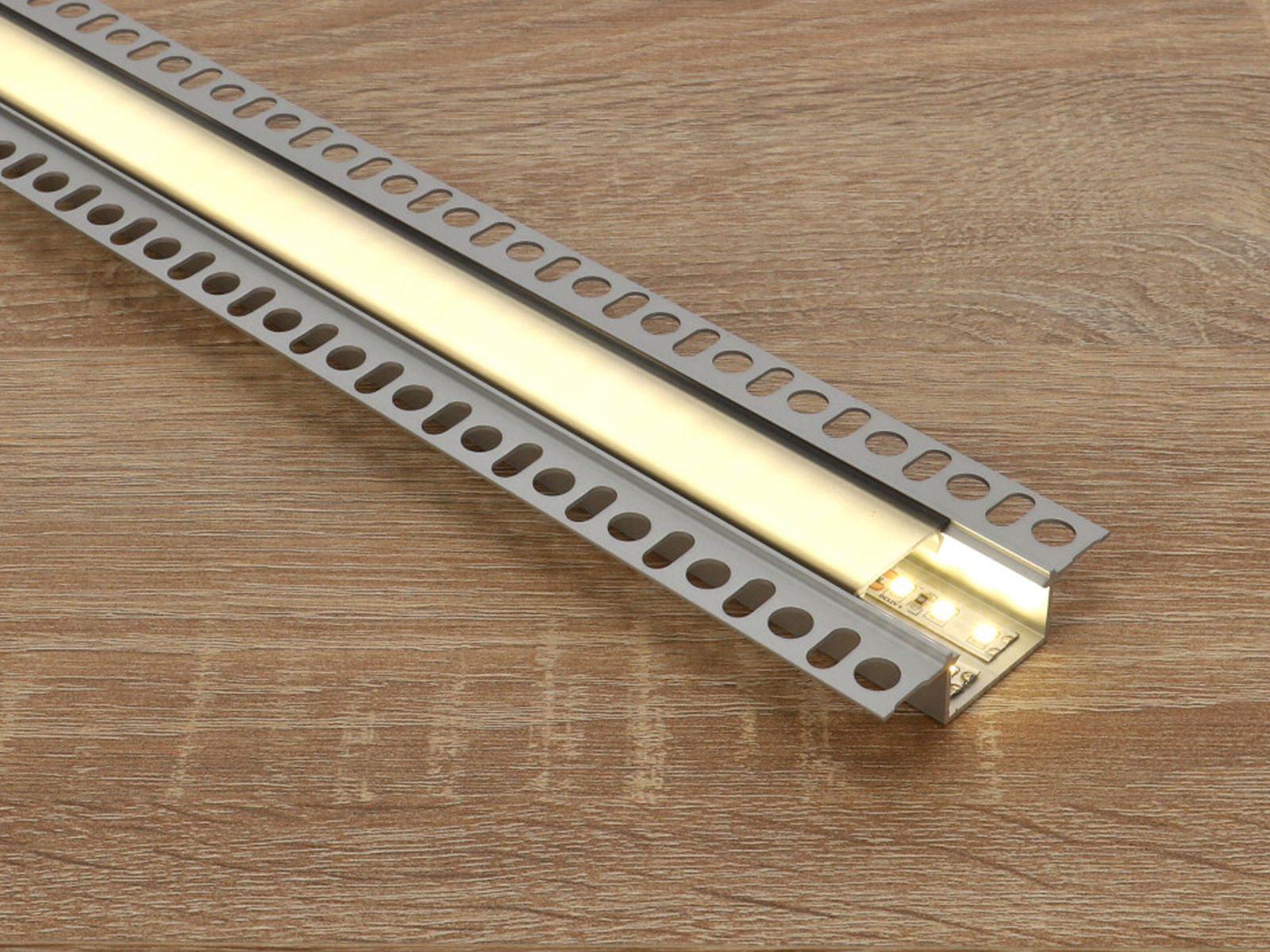 Alumínium LED profil: Alumíniumból készült szálas termék, különböző keresztmetszetekkel. Kifejezetten LED szalagok beépítéséhez, dekoratív takarásához, a LED által termelt hő elvezetésére szolgáló alumínium sín.