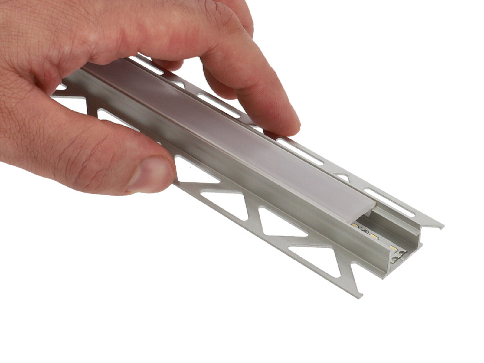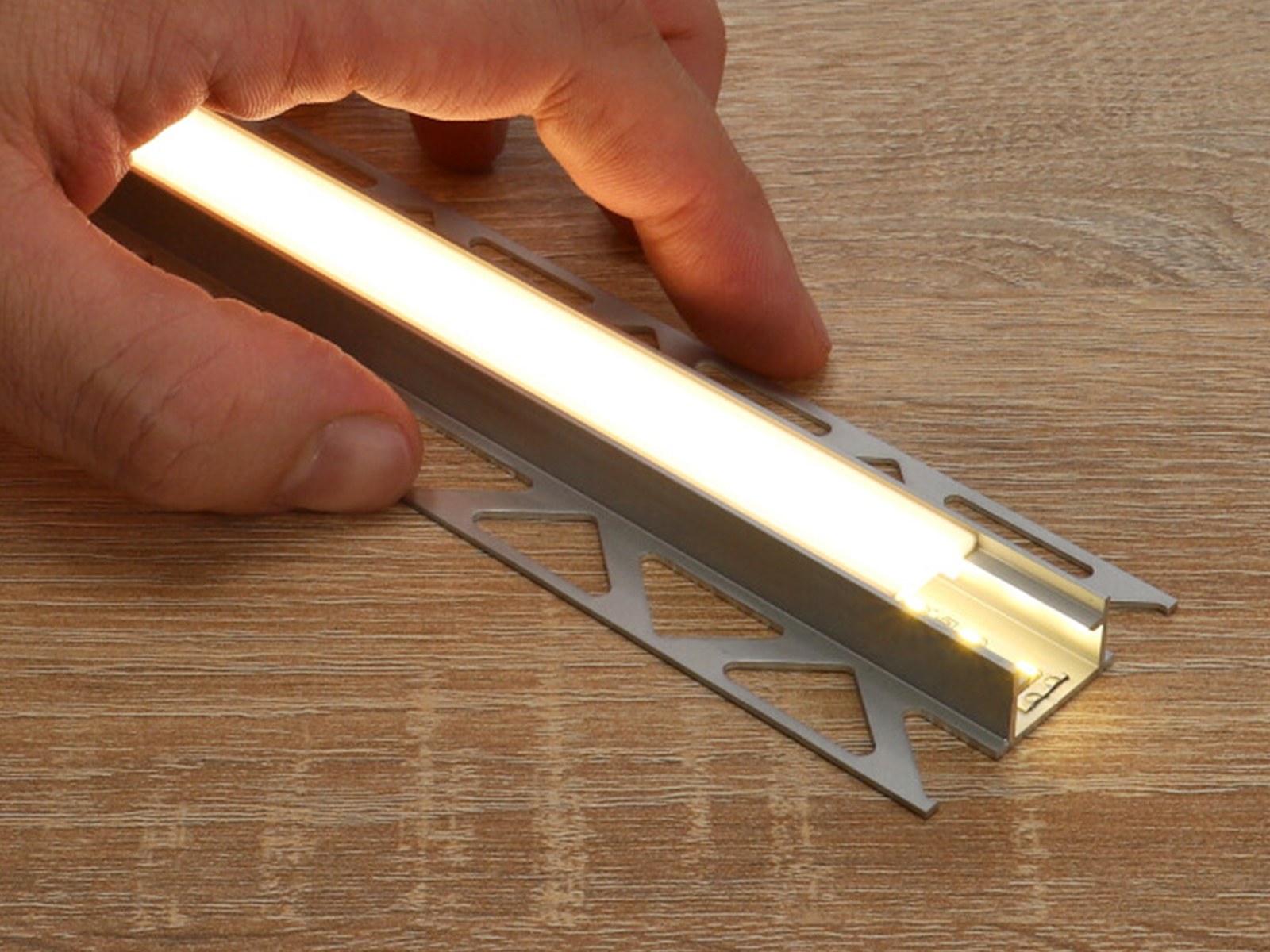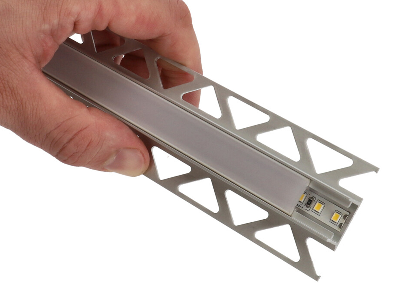 Alumínium LED profil: Alumíniumból készült szálas termék, különböző keresztmetszetekkel. Kifejezetten LED szalagok beépítéséhez, dekoratív takarásához, a LED által termelt hő elvezetésére szolgáló alumínium sín.