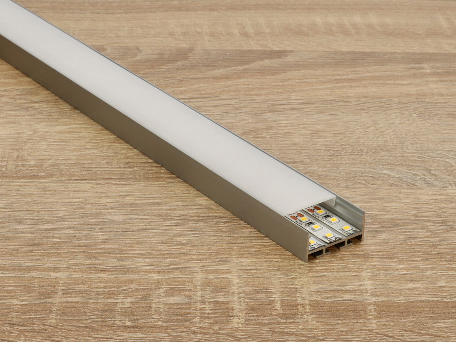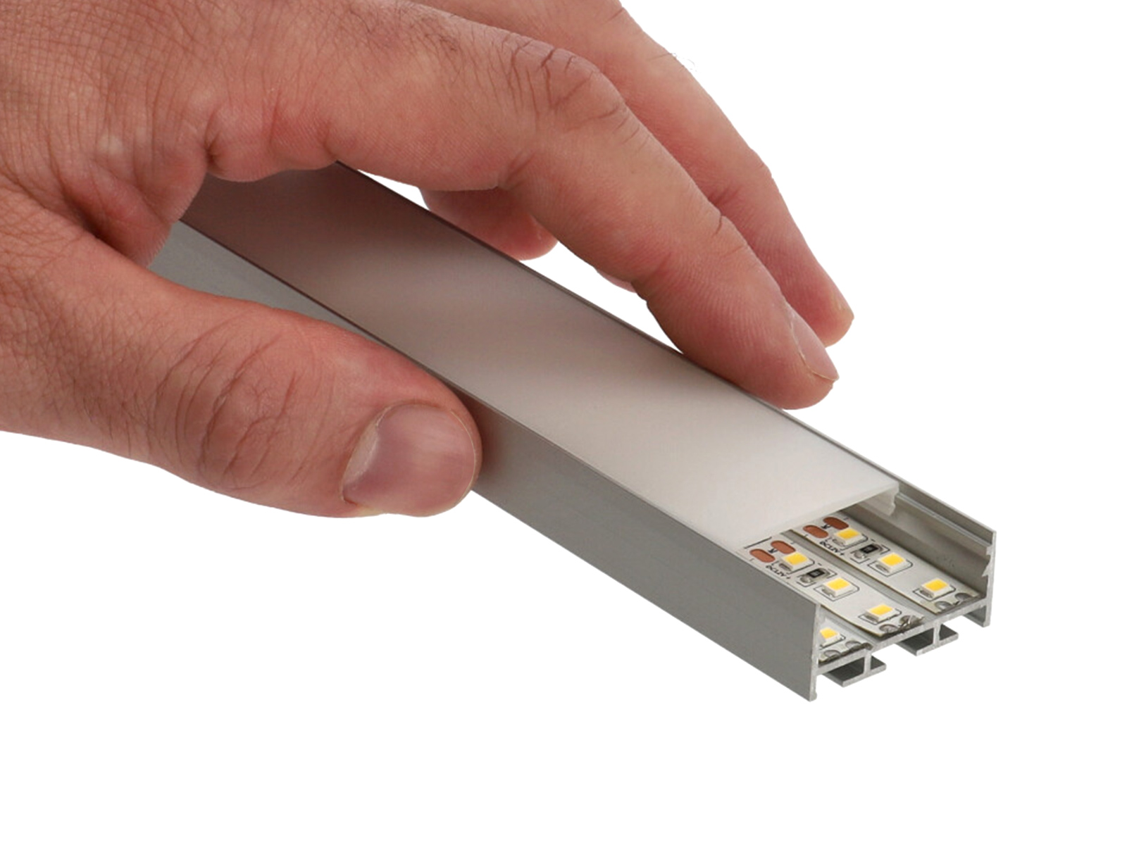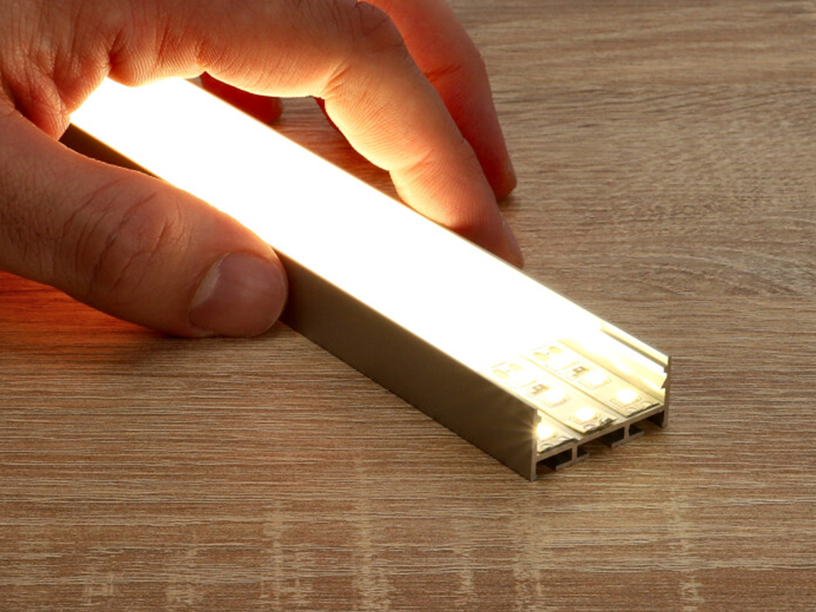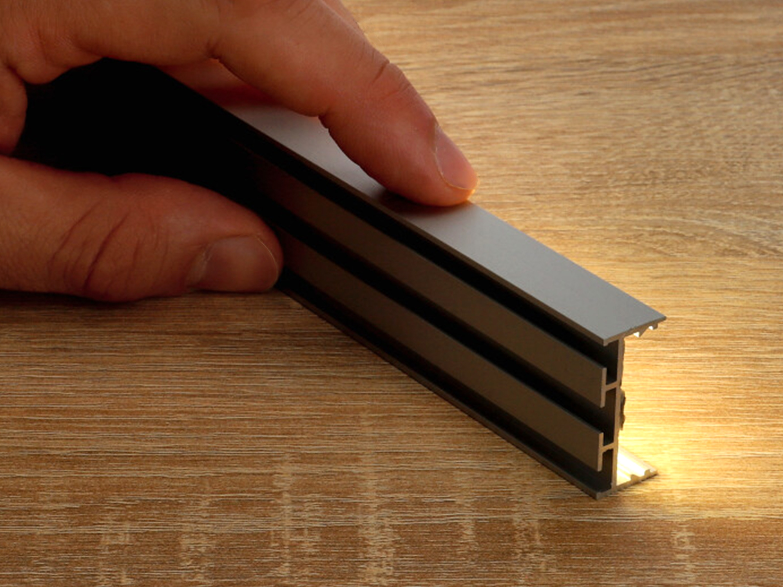 Alumínium LED profil: Alumíniumból készült szálas termék, különböző keresztmetszetekkel. Kifejezetten LED szalagok beépítéséhez, dekoratív takarásához, a LED által termelt hő elvezetésére szolgáló alumínium sín.