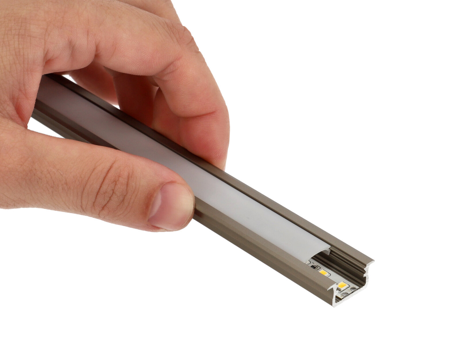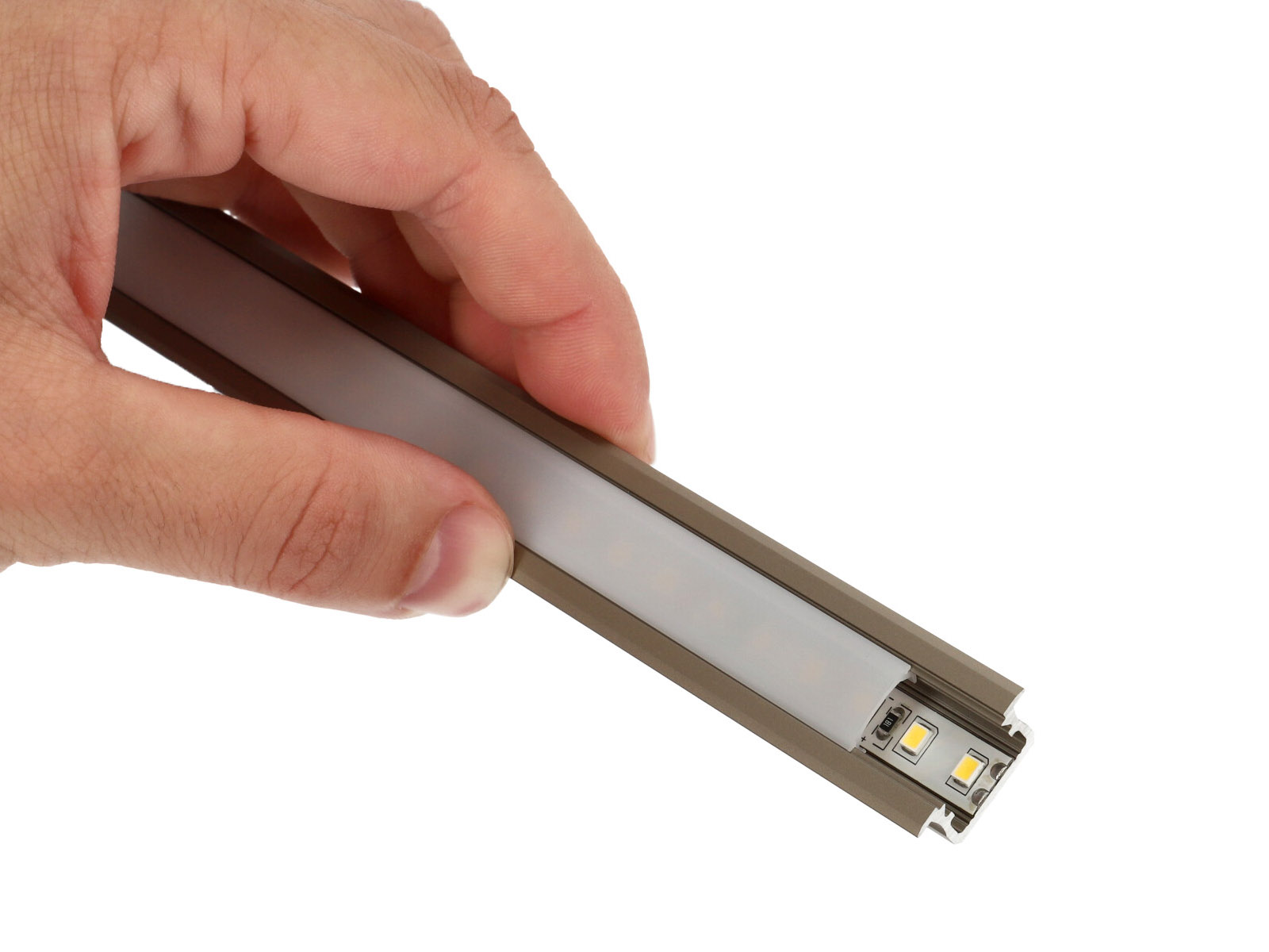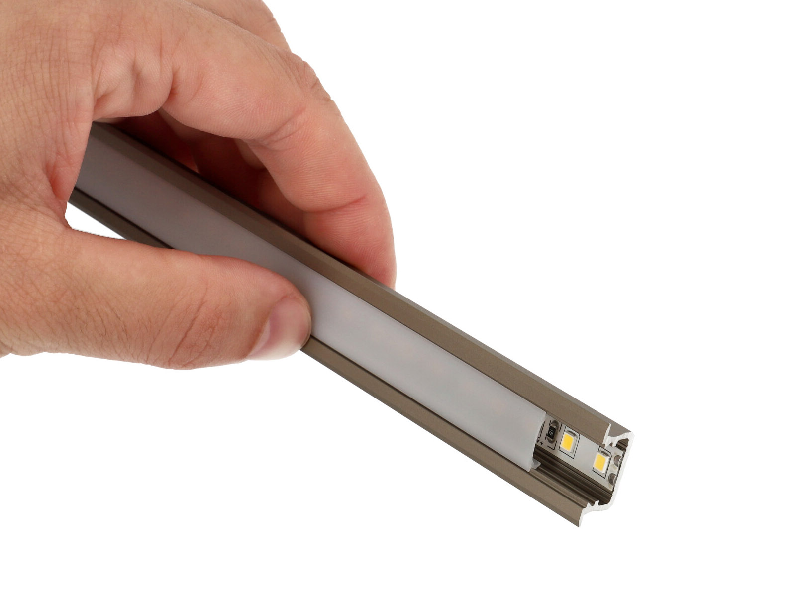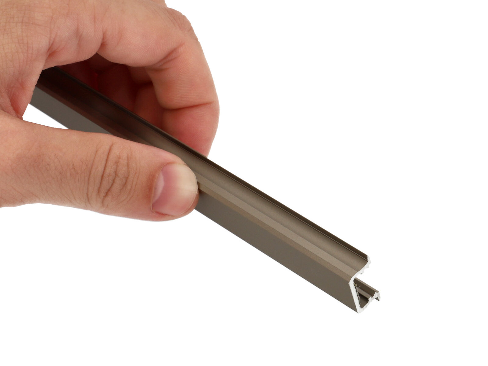 Alumínium LED profil: Alumíniumból készült szálas termék, különböző keresztmetszetekkel. Kifejezetten LED szalagok beépítéséhez, dekoratív takarásához, a LED által termelt hő elvezetésére szolgáló alumínium sín.