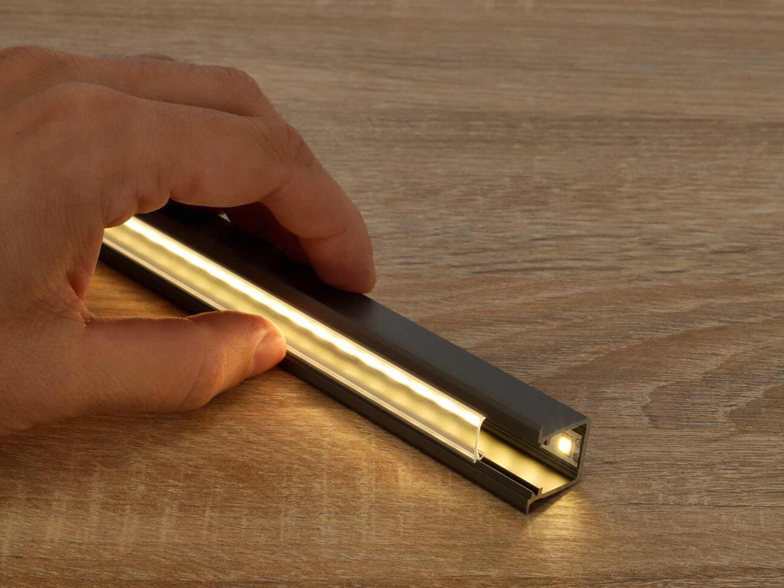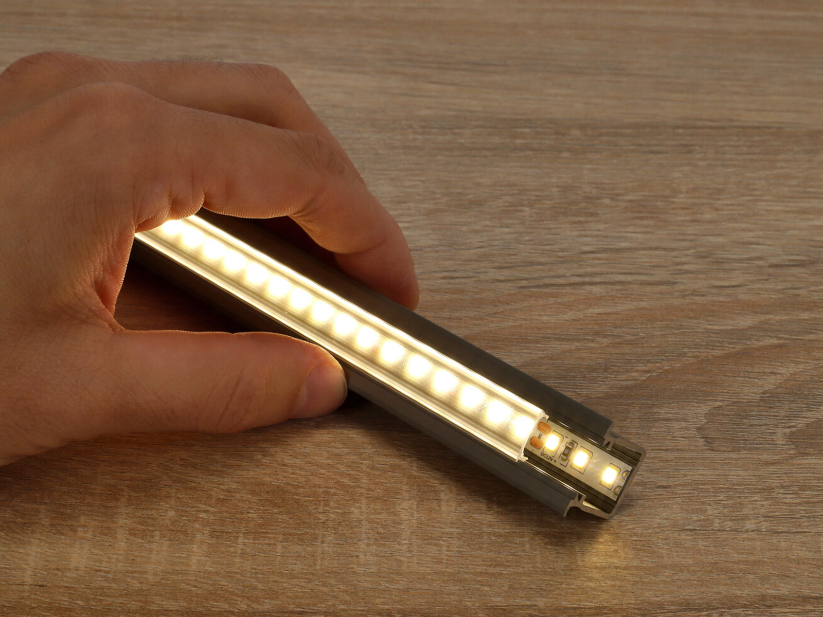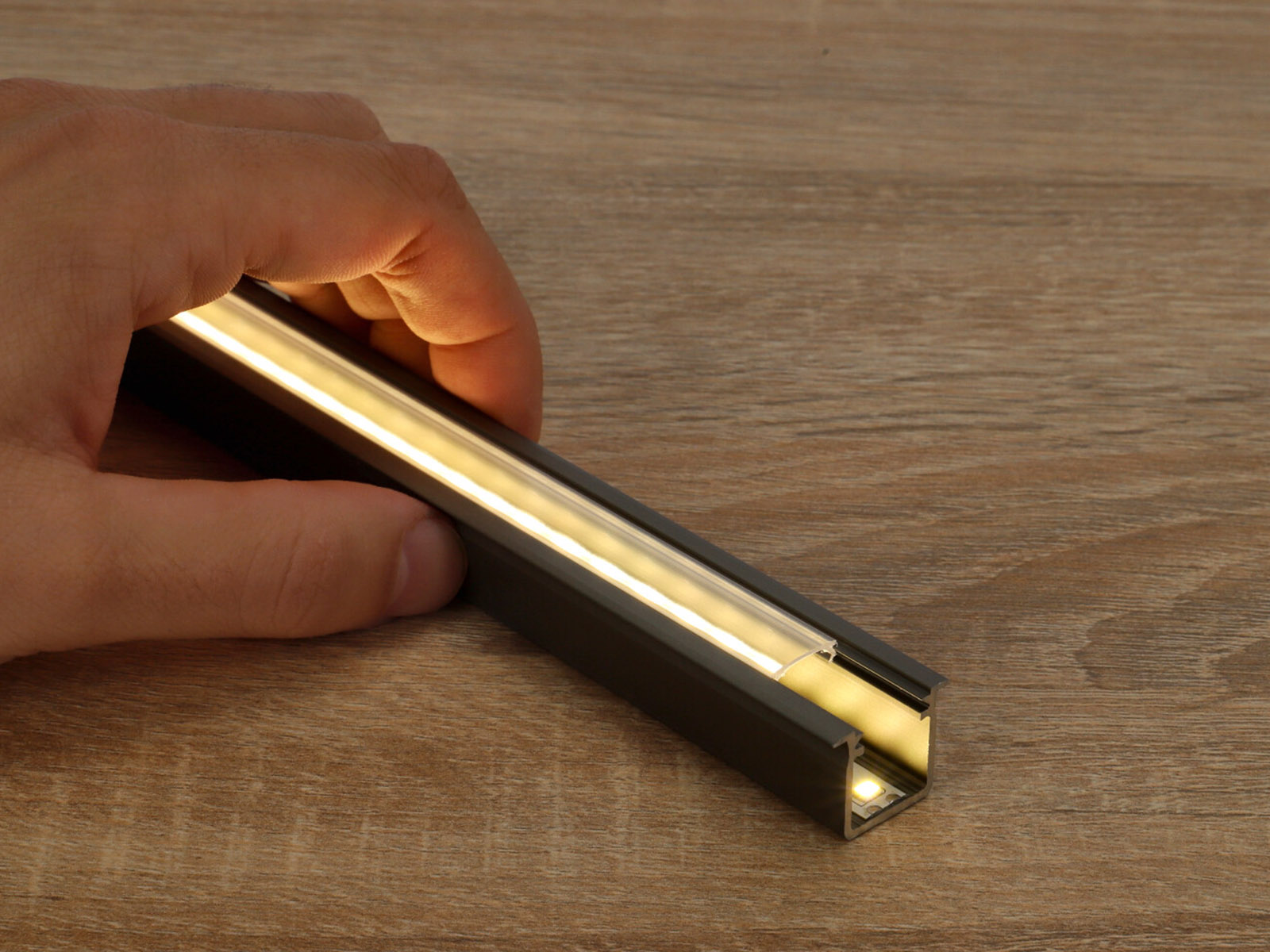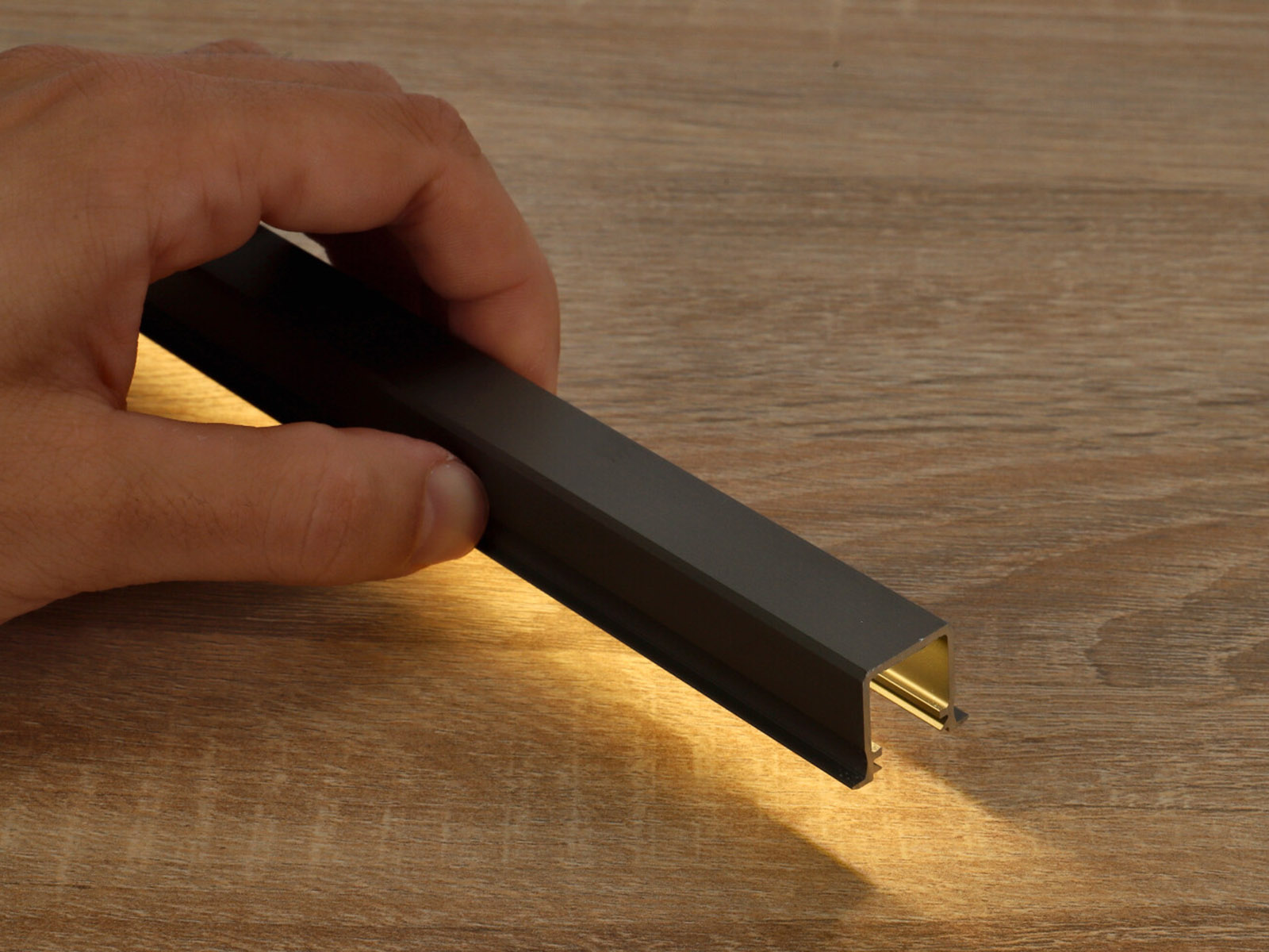 Alumínium LED profil: Alumíniumból készült szálas termék, különböző keresztmetszetekkel. Kifejezetten LED szalagok beépítéséhez, dekoratív takarásához, a LED által termelt hő elvezetésére szolgáló alumínium sín.
