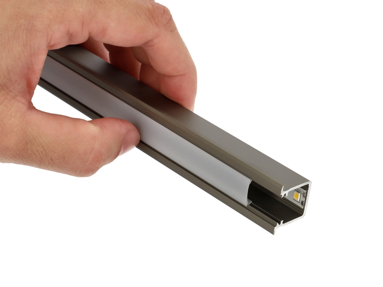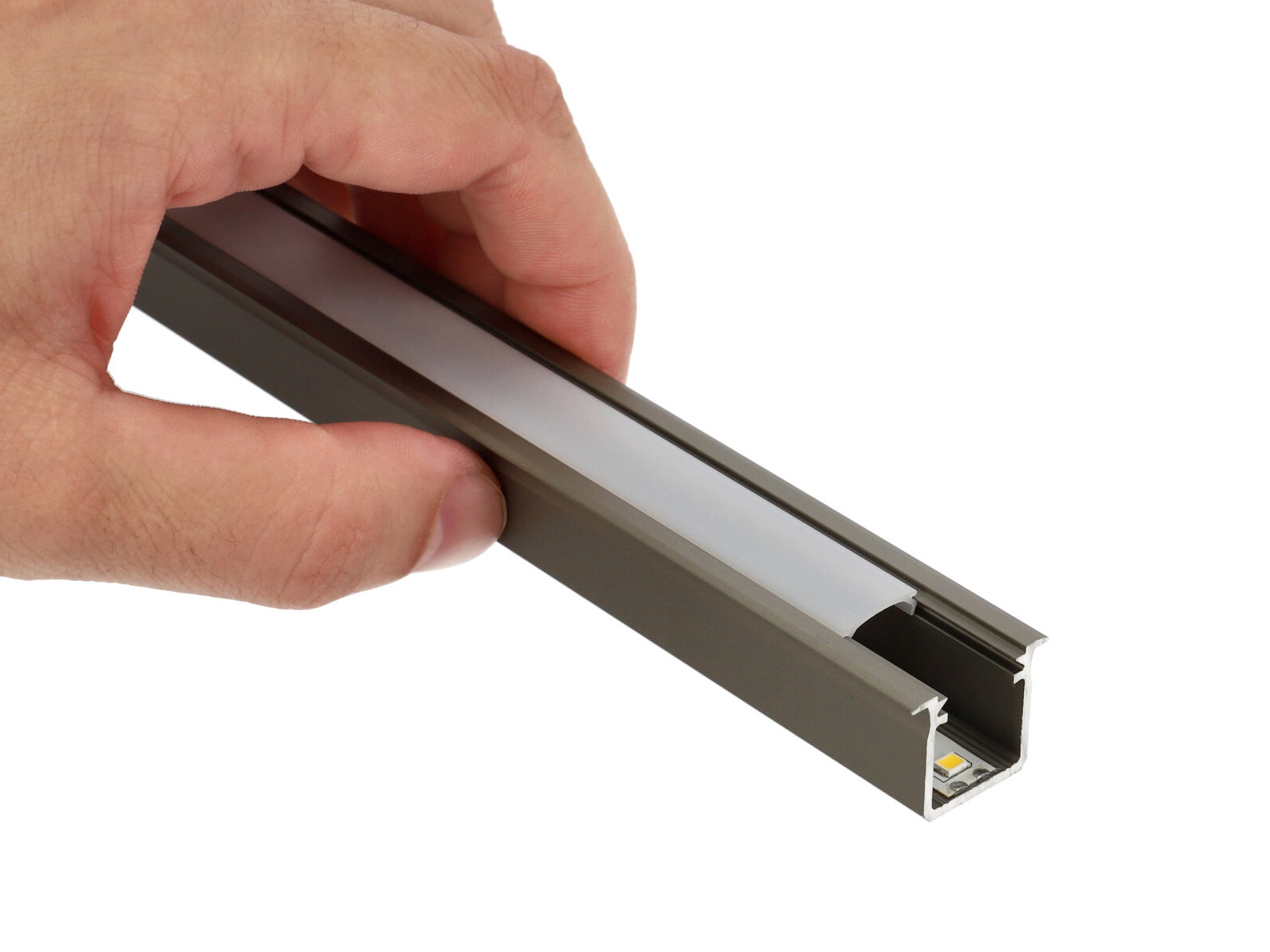Alumínium LED profil: Alumíniumból készült szálas termék, különböző keresztmetszetekkel. Kifejezetten LED szalagok beépítéséhez, dekoratív takarásához, a LED által termelt hő elvezetésére szolgáló alumínium sín.